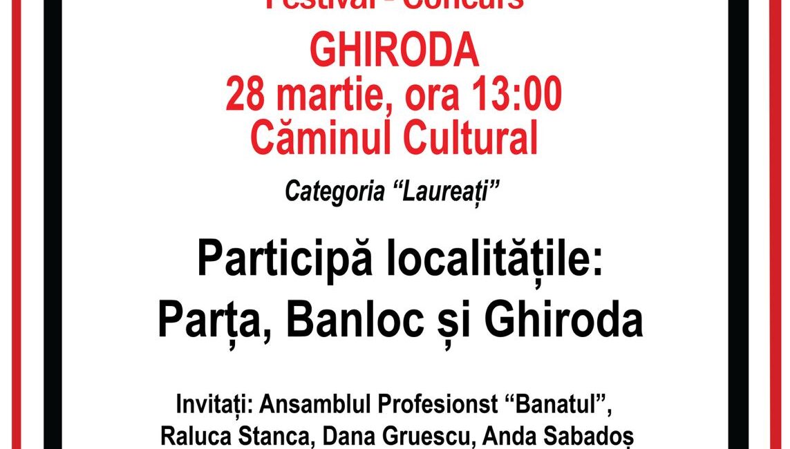 Sâmbăta aceasta, 28 martie, pe scena din curtea Căminului Cultural, Ghiroda va fi gazda Festivalului – Concurs „Lada cu Zestre”, un eveniment dedicat tradițiilor autentice din județ.
